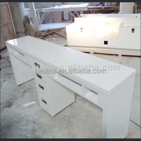 Mesa de manicura para salón de manicura con cajones, piedra artificial moderna