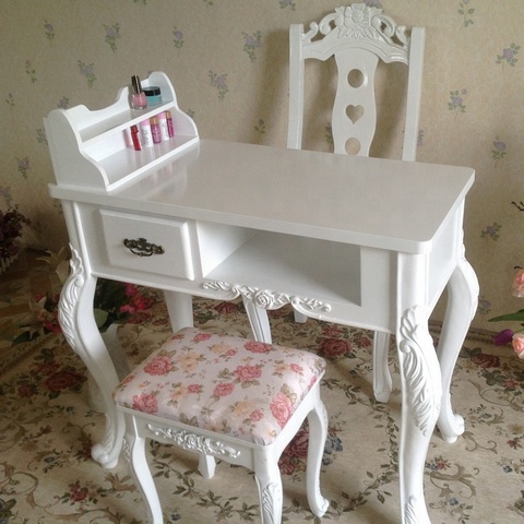 Gran oferta, MESA DE MANICURA vintage pintada en blanco con armario de almacenamiento grande